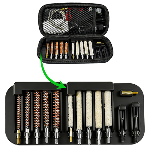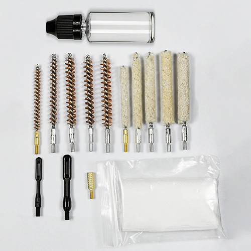 В комплект для чистки винтовки входят 5 размеров (.177, .22, .243, .27, .30 кал.), латунные щетки. и ватные швабры, 5 палочек, 2 кальба. Песочный и черный цвет на выбор.