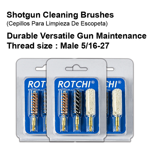 Щетка для чистки канала ствола ружья, набор 3-в-1, блистер и карточка. пакет. Доступные размеры: 12G, 16G, 20G, 410.